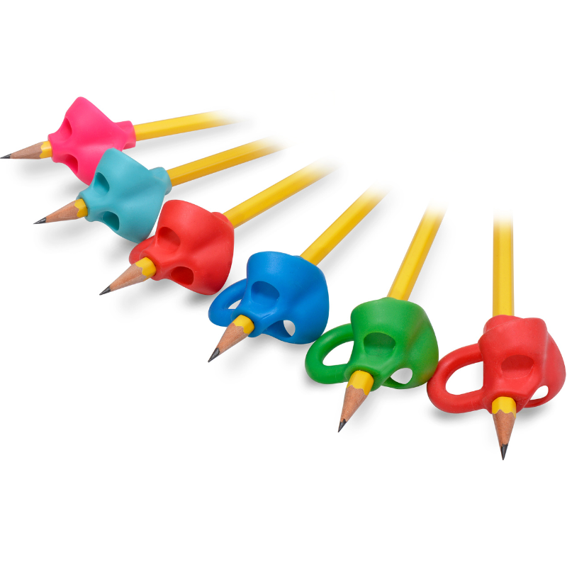 The Duo Grip holds a place for both your thumb and your pointer finger for more comfortable writing! The Duo Grip fits on pens, pencils, crayons, and more!