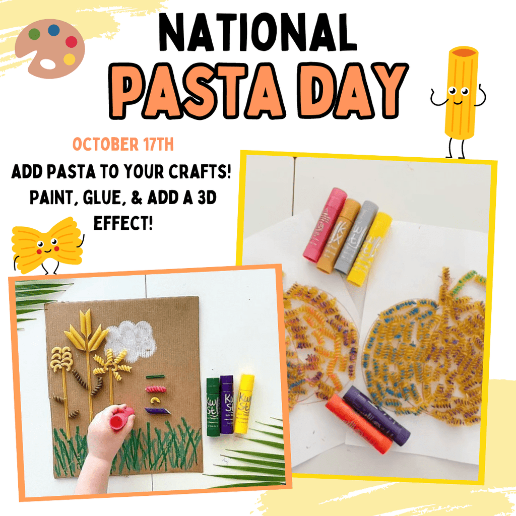 It's time to celebrate National Pasta Day on October 17th! Not only is pasta one of our favorite foods but it can be used as a great addition to your crafts!
